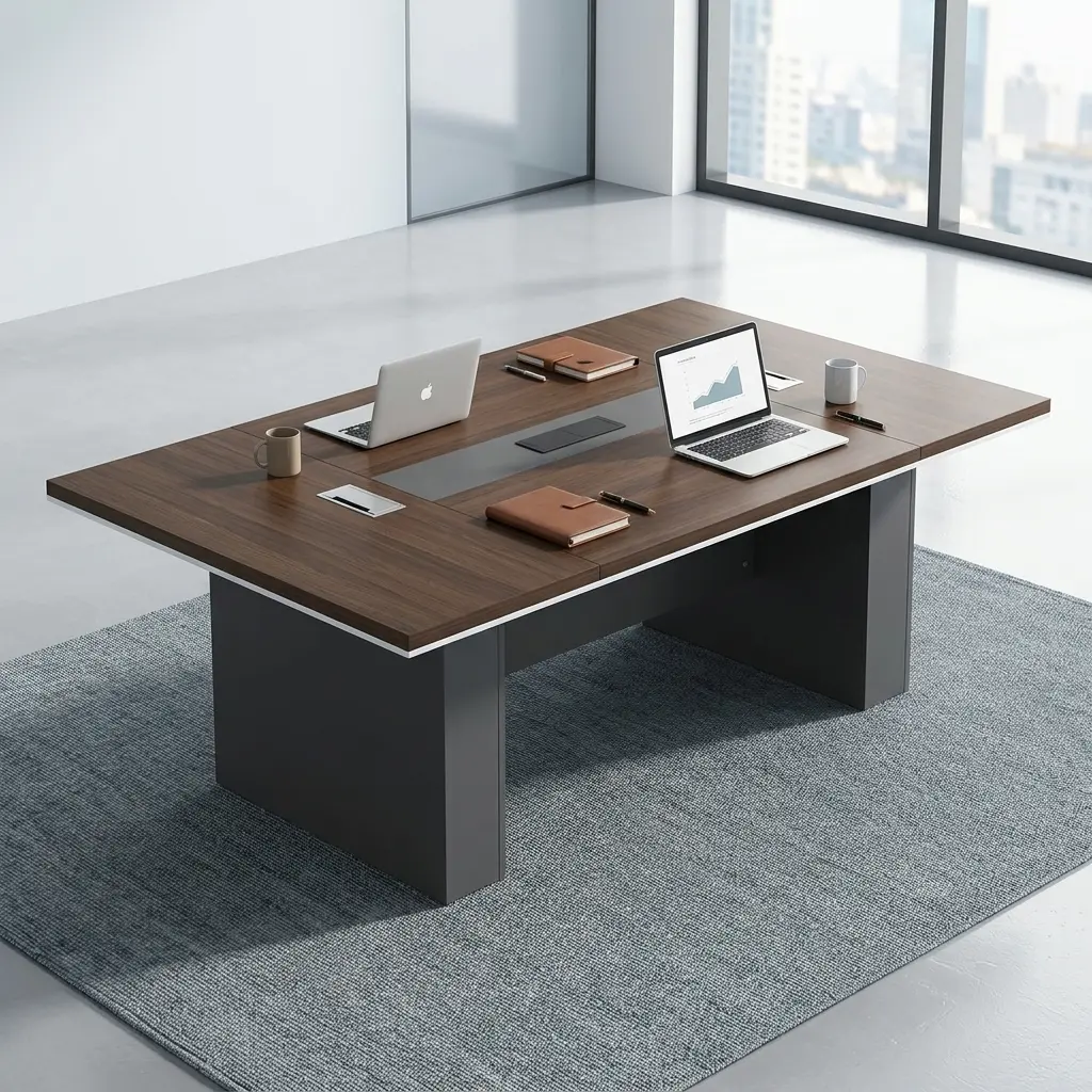 This conference table is highly versatile. It can be used for team meetings, brainstorming sessions, client discussions, or even as a collaborative workstation. Its adaptable design makes it a valuable addition to various office setups.