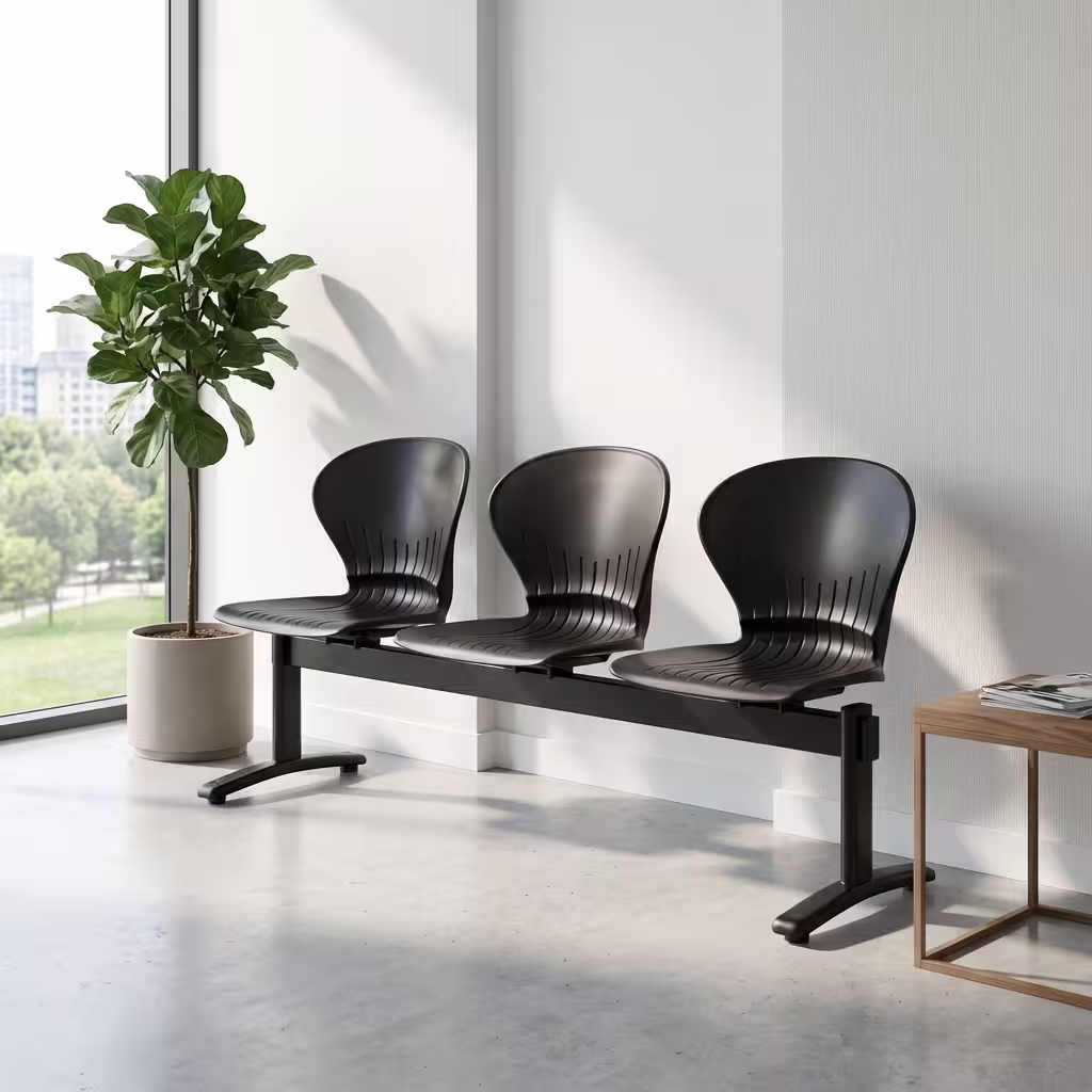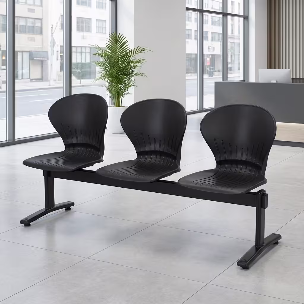 Built on a strong powder-coated steel beam frame, this 3-seater waiting chair offers exceptional stability and long-term durability. The metal structure is resistant to rust, scratches, and wear, making it suitable for both commercial and institutional use. The black finish enhances its professional appeal and allows easy coordination with existing office furniture and décor.