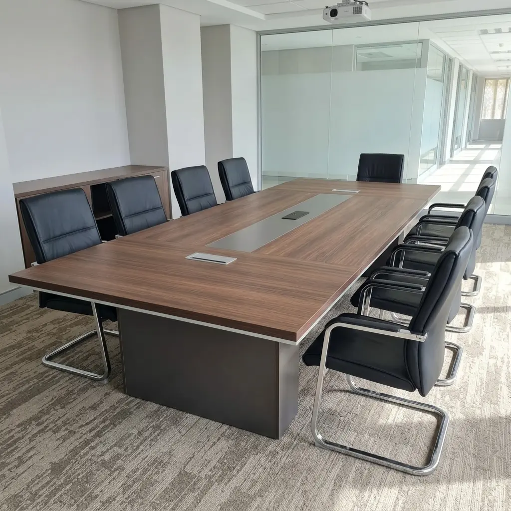 Durability is a key advantage of this conference table. Built using high-quality materials, it is engineered to withstand daily use in busy office environments. The strong base structure ensures stability, providing a reliable surface for laptops, documents, and presentation materials during extended meetings.