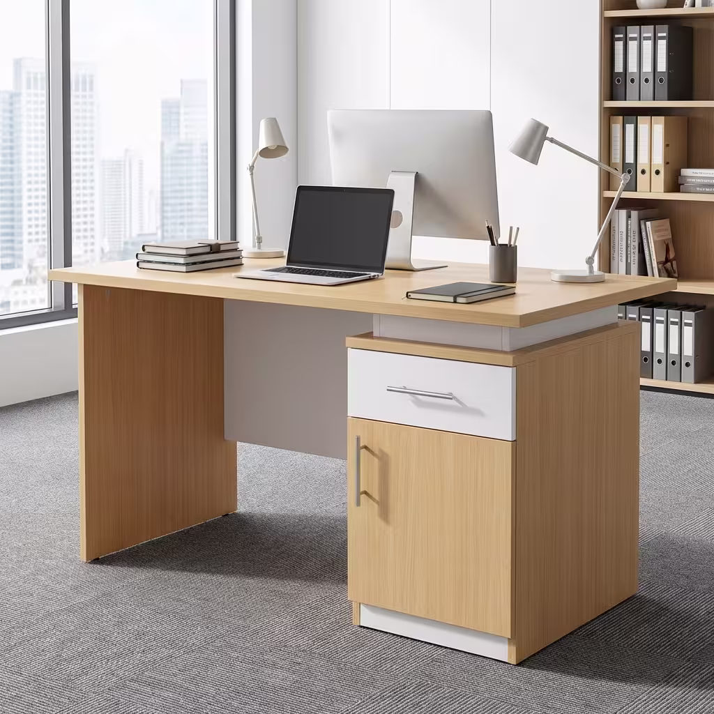 Refine your workspace with the Compact Executive Office Desk – a premium 1200mm desk solution tailored for Kenyan professionals who value secure storage, clean aesthetics, and efficient layout. With a lockable drawer, cabinet, and a sleek light wood finish accented by white panels, this desk is ideal for executive offices, home setups, and organized workstations.