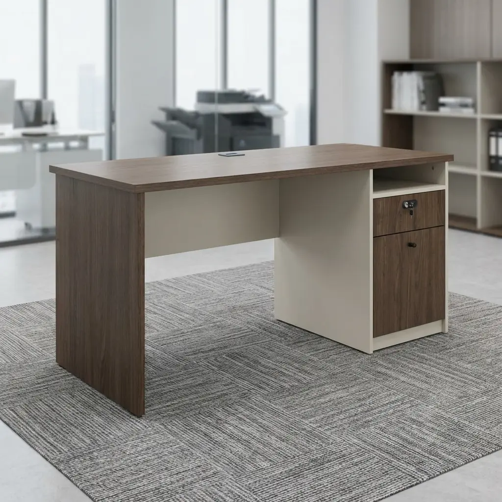 Efficient storage is essential for keeping workspaces organized. The Executive 1.4m Office Desk includes a convenient lockable storage unit that allows users to safely store documents and office supplies.