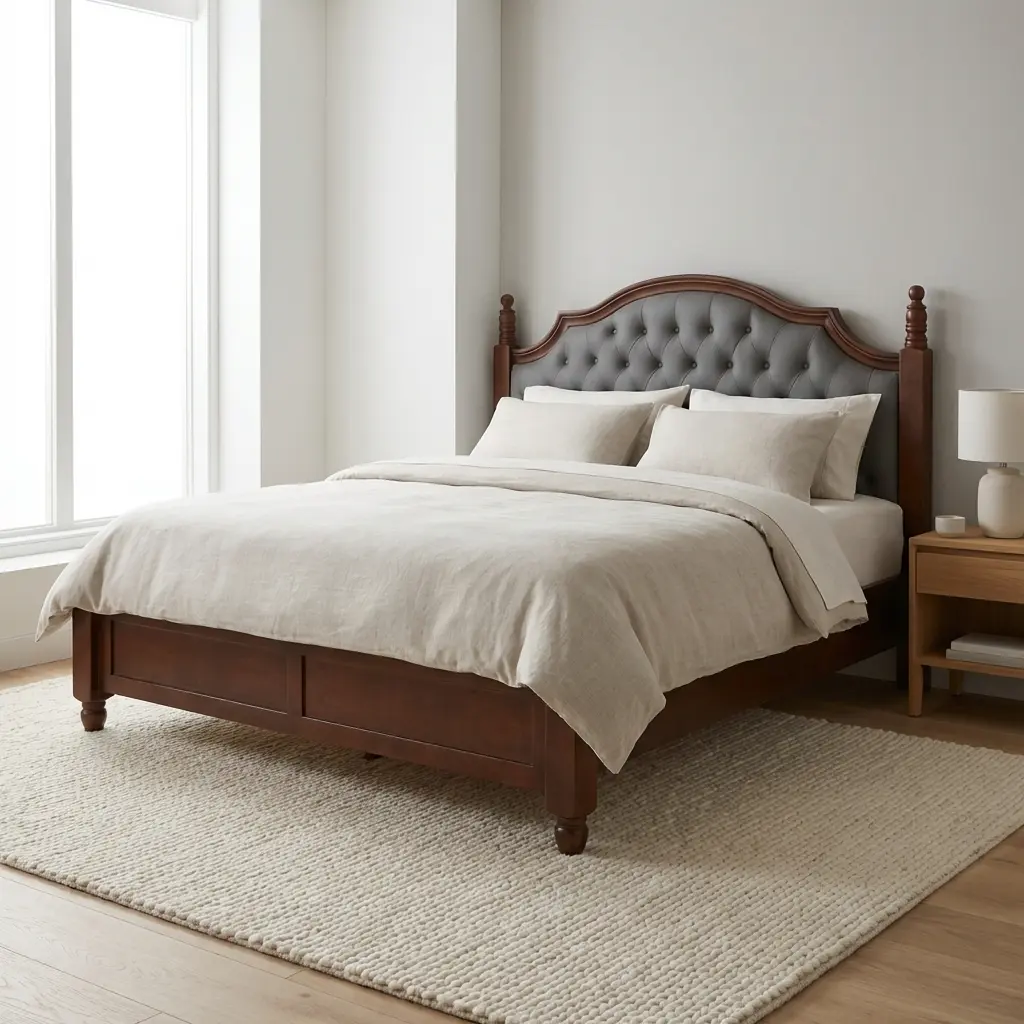 The standout feature of this bed is its upholstered tufted headboard, designed to deliver both comfort and luxury. The padded backrest provides excellent support, making it ideal for sitting up while reading, watching TV, or working from bed. The elegant button-tufted design adds a refined aesthetic, instantly elevating the look of your bedroom.