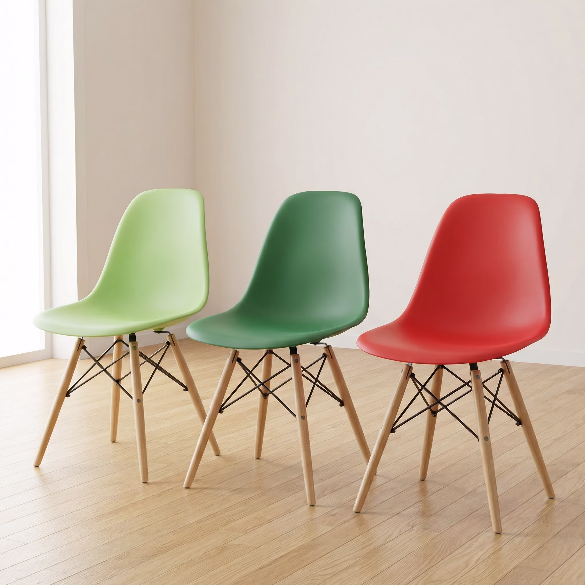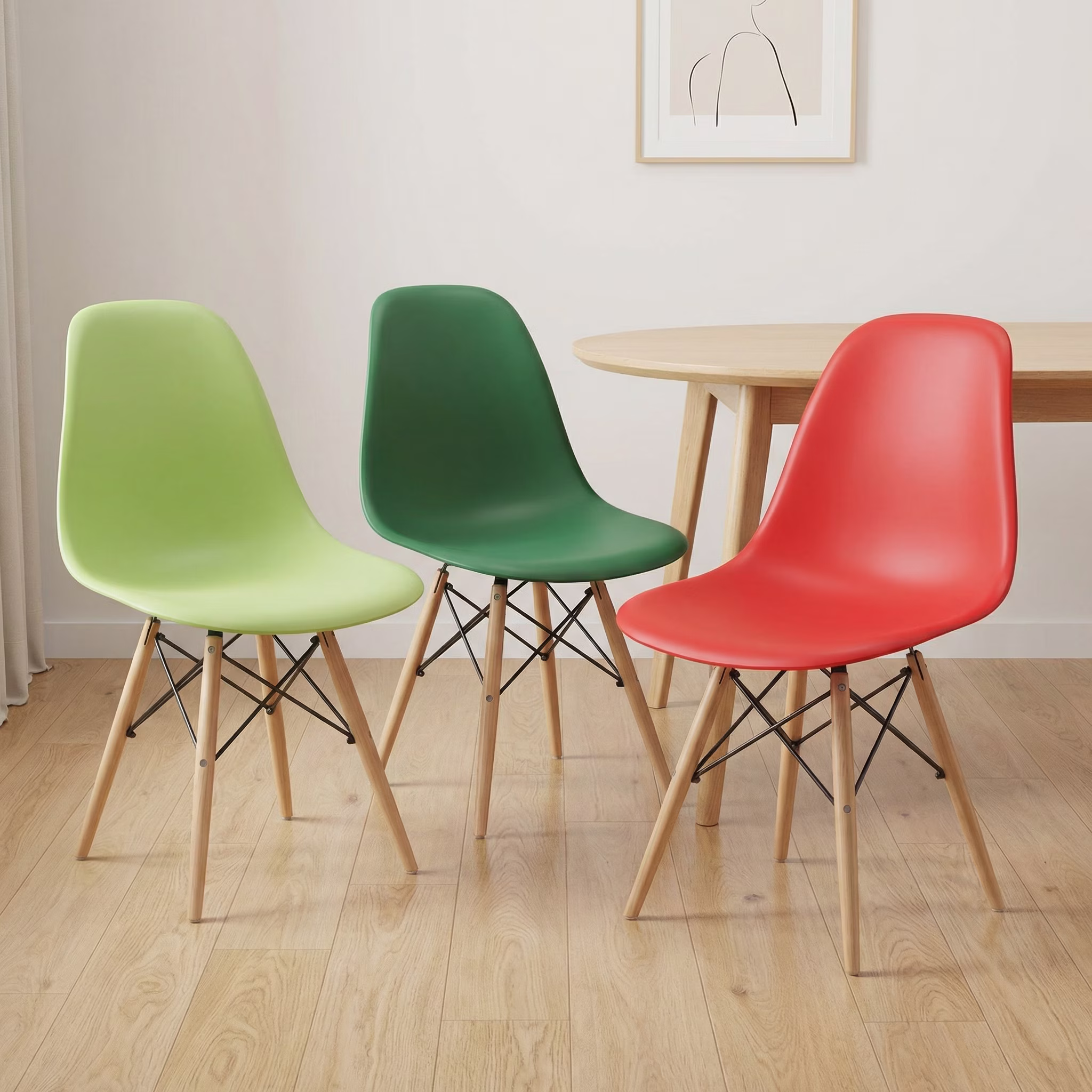 Beautiful design should also be built to last. Our Modern Eames Style Seat is constructed with high-quality materials and meticulous attention to detail. The sturdy wooden legs, often crafted from beech or maple, provide exceptional stability and durability, ensuring that your chairs will withstand the rigors of daily use for years to come. The robust connections between the seat and the legs are designed for long-term stability, offering you peace of mind and lasting enjoyment. The easy-to-clean seat material further enhances the practicality of these chairs, making them a sensible choice for busy households and commercial spaces alike.
