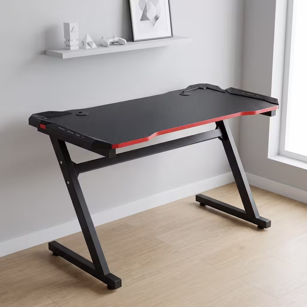 The bold red edge trim combined with LED lighting creates a striking gaming aesthetic. The modern black finish gives the desk a professional look suitable for: