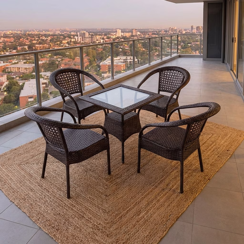 The Premium 5-Piece Rattan Set is a strong choice for people who want to maximize outdoor living without overcrowding their space. Its layout is especially well-suited for balconies, verandas, courtyards, compact patios, and scenic terraces where style and efficient use of space matter equally. The set offers enough seating for a small group while still maintaining an open, airy feel. This makes it attractive to urban homeowners, property developers, and hospitality businesses seeking furniture that adds value both visually and functionally.